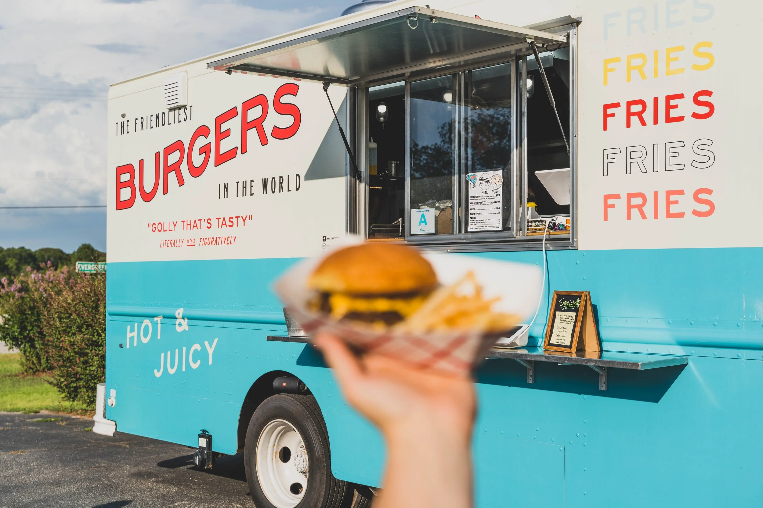 In 2020 Matty’s Pattys launched their first food truck. With the mission to serve the friendliest burger this side of the Mississippi, they specialize in smashburgers using fresh ground chuck, topped with grilled onions and American cheese, served on a toasted potato roll with their signature No. 5 Sauce. You can check out their next stop here, as they’re always on the move.